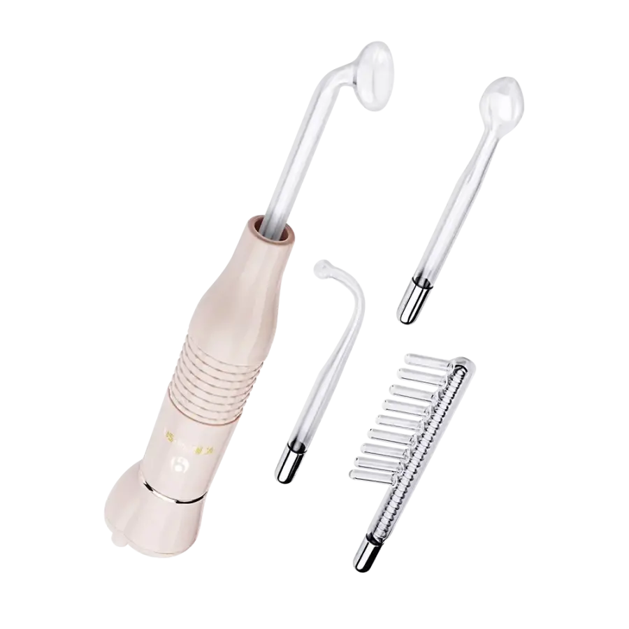 Компактный импульсный массажёр имеет в комплекте 4 насадки. Это специальные стеклянные электроды разной формы, наполненные неоном или воздухом. Девайс можно использовать 2-мя способами: контактным (т.е. касаясь насадкой кожи) и бесконтактным (когда электрод находится на расстоянии 1-4 мм от кожи). Первый метод эффективен, например, при лечении целлюлита и варикоза, второй способен обеззараживать кожу (без химических повреждений), помогая бороться с угревой сыпью и ускорять заживление ран.